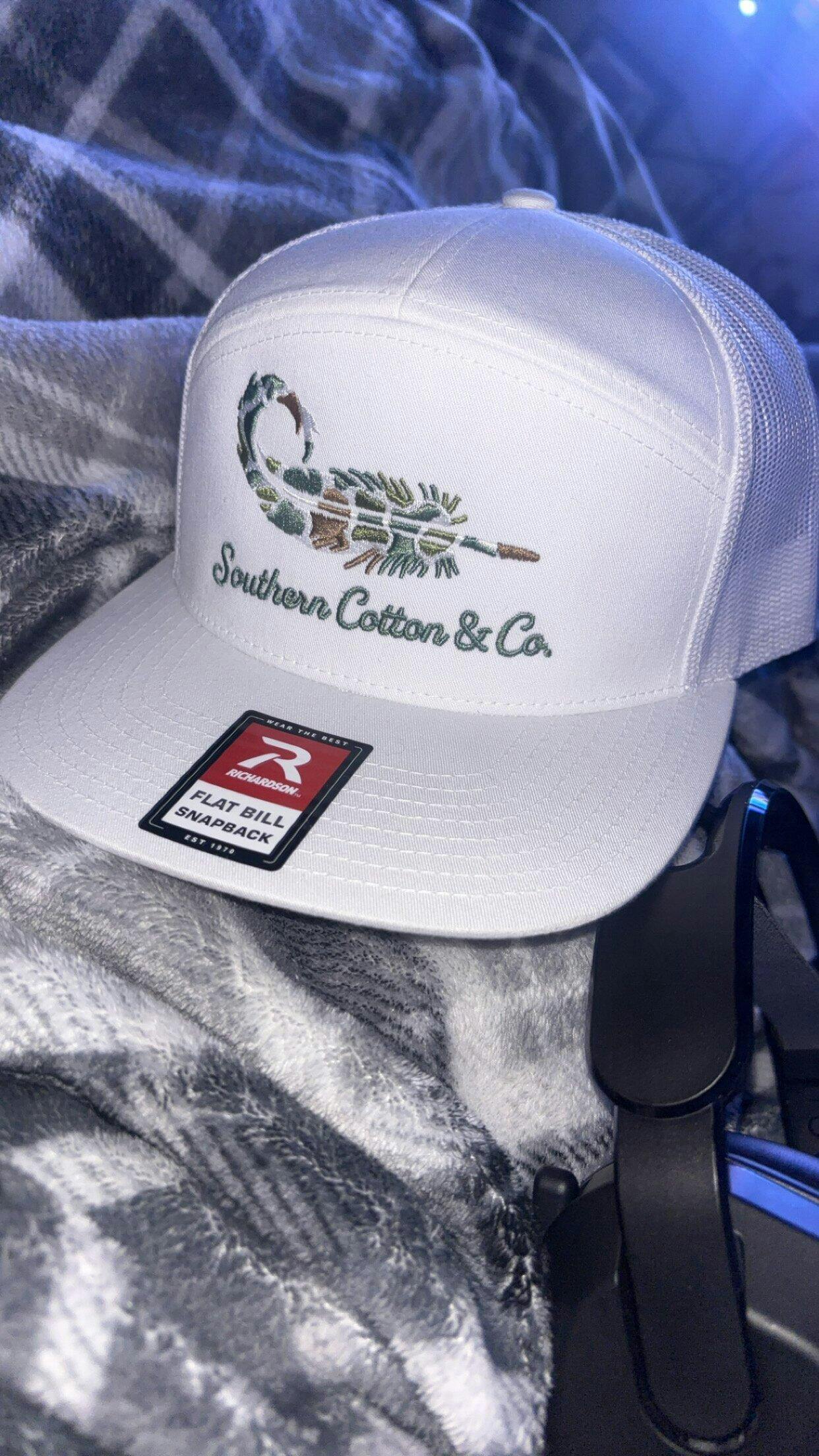 Clean, crisp, and eye-catching. The Richardson 168 White hat pairs a sharp 7-panel profile with our premium Southern Cotton & Co. embroidery for a standout look. Whether you're on the water or out for the day, this hat keeps your fit fresh with a structured build and quality stitching built to last.